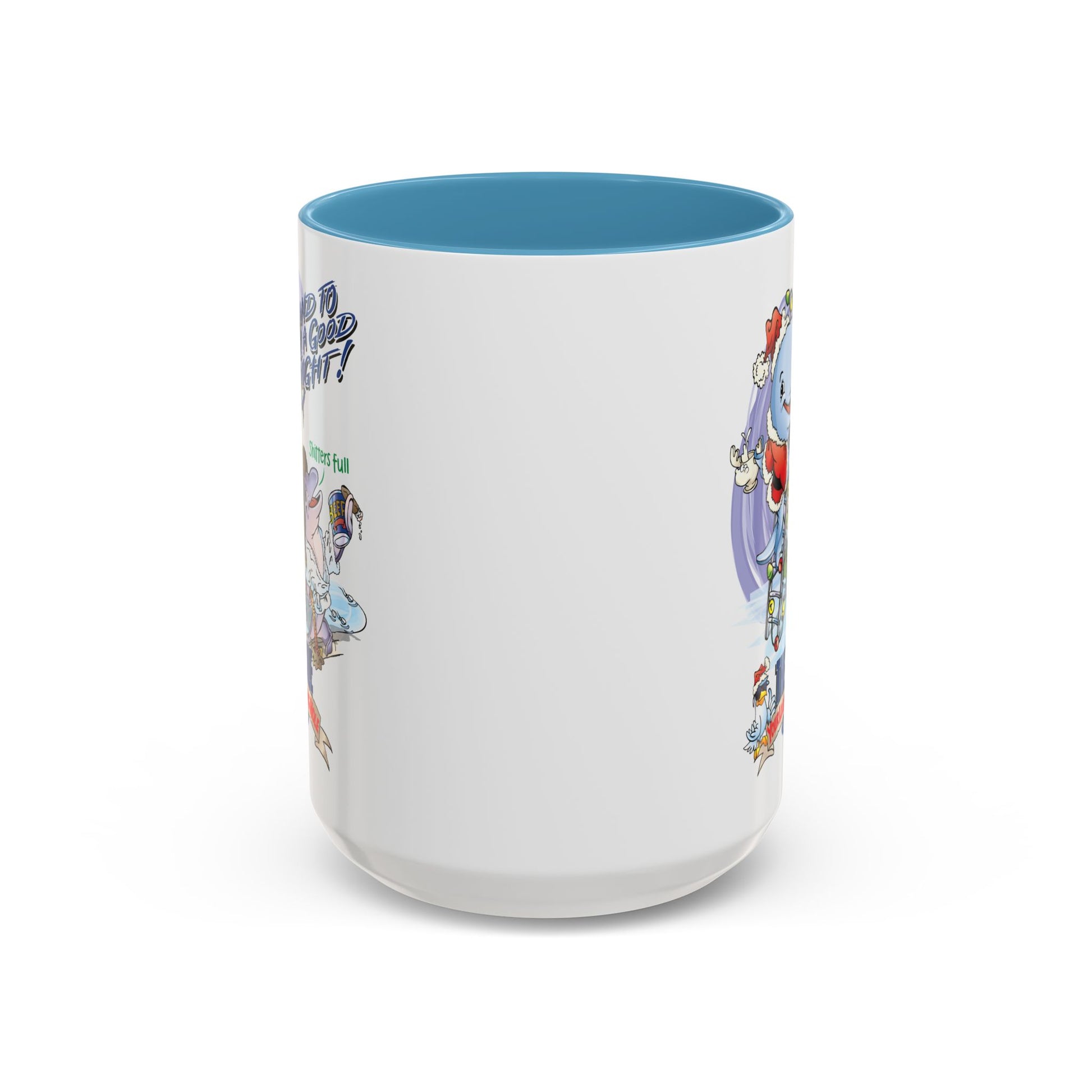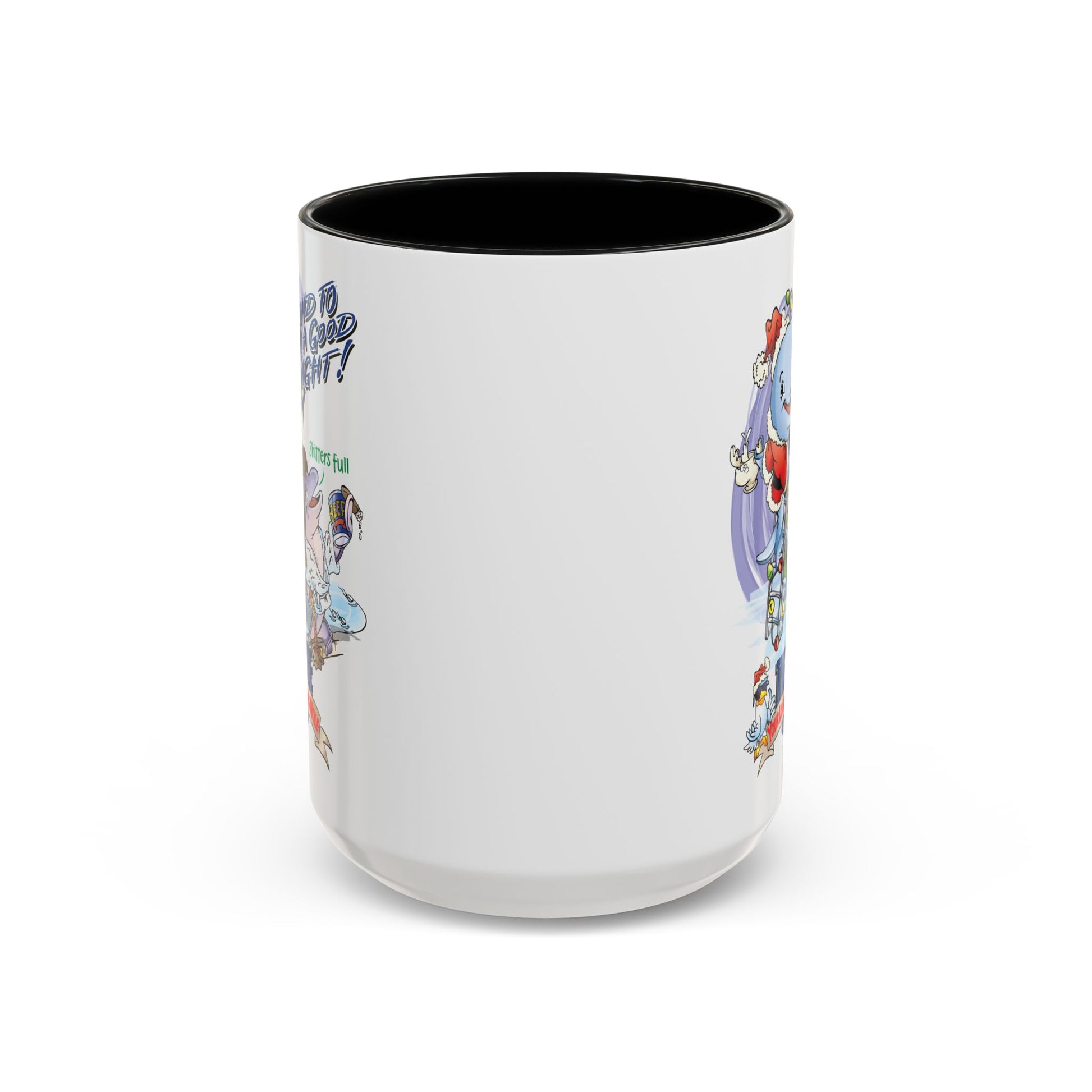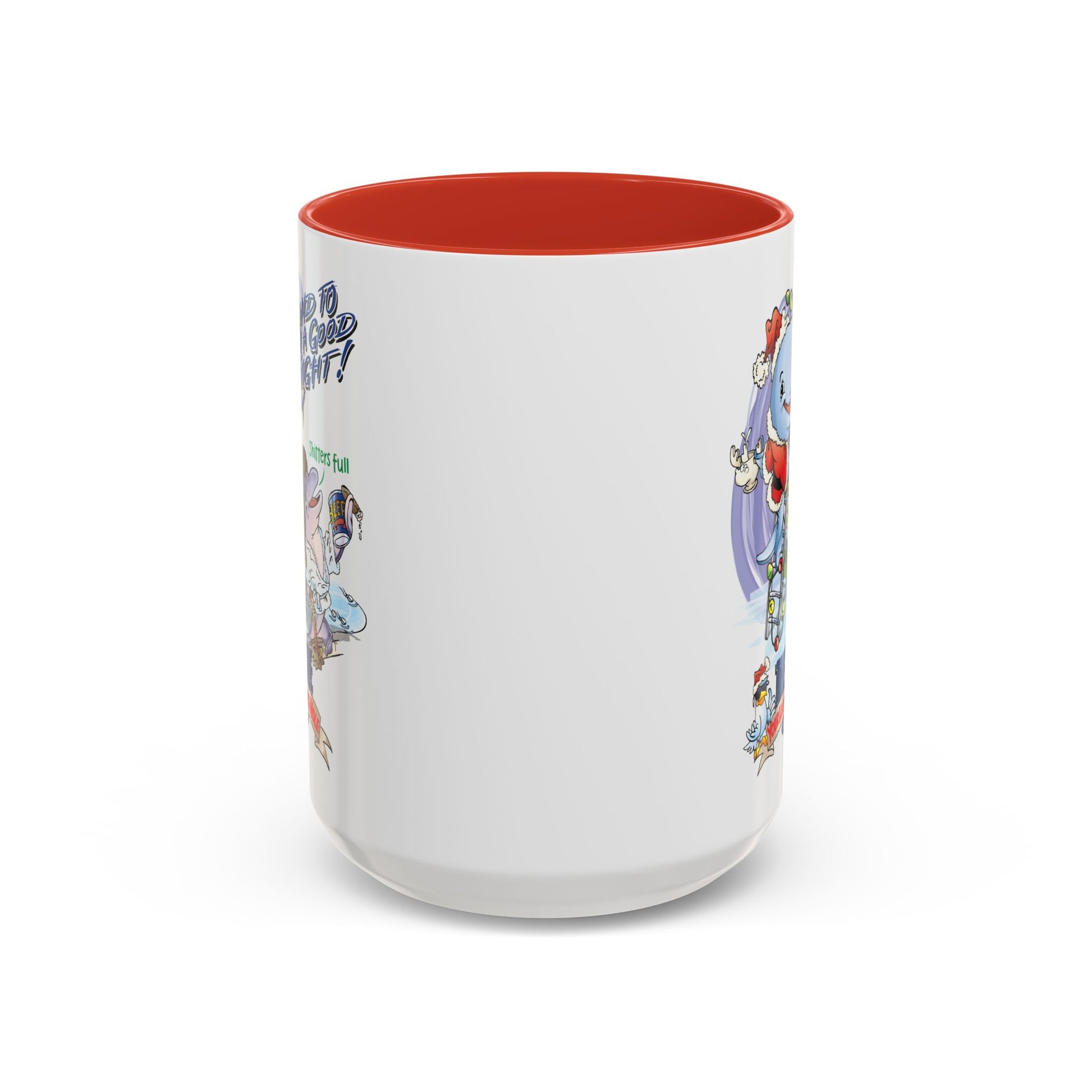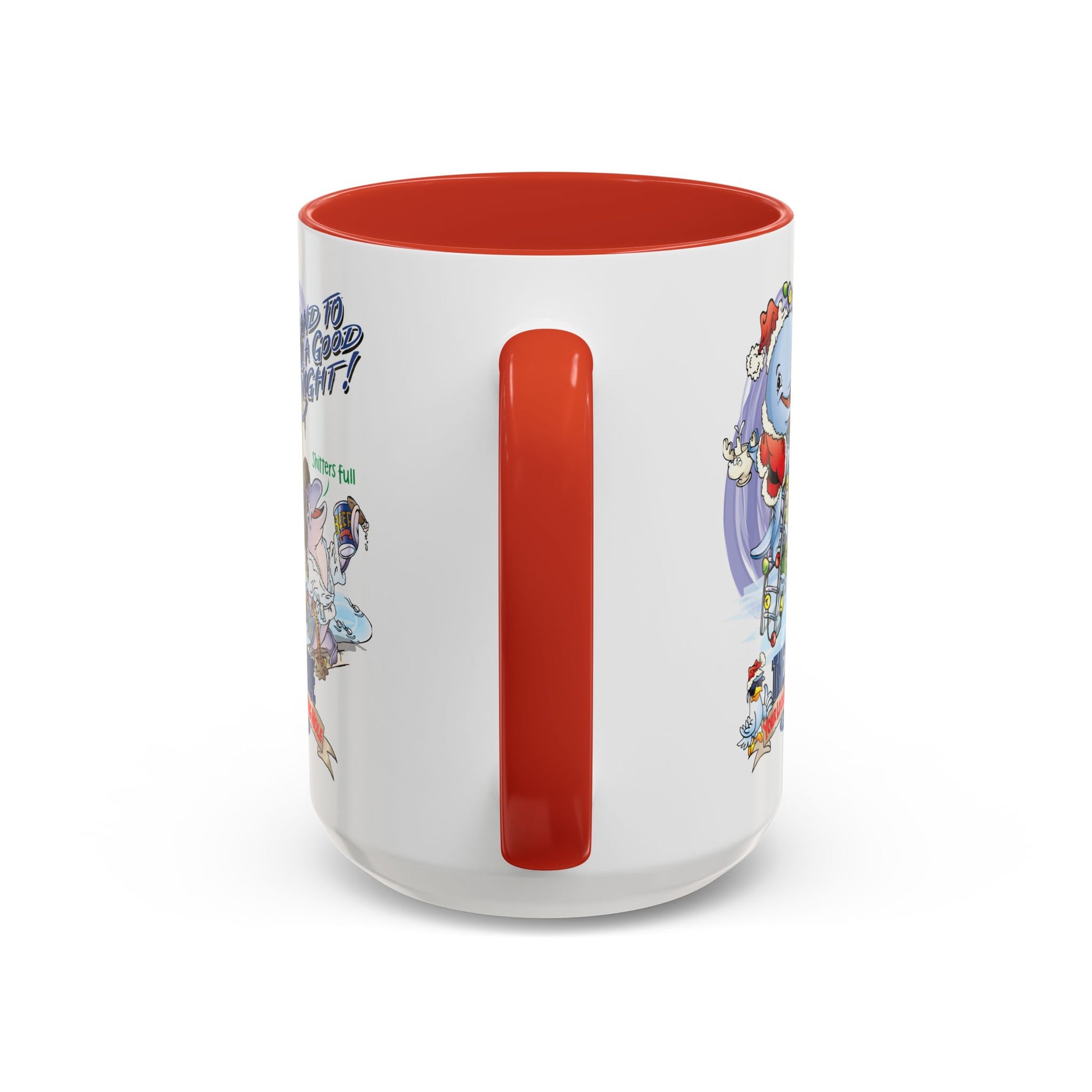A cheerful ceramic mug that brings holiday nostalgia to every morning ritual. Bright, crisp artwork wraps the glossy white surface, contrasted by a colored interior and C-shaped handle that add a playful pop. The scene — whimsical characters decking a tree and sharing laughter — creates a cozy, sing-along atmosphere while you sip coffee, tea, or cocoa. Durable and food-safe, this mug holds either a compact 11 oz or a roomy 15 oz pour, and the vibrant print stays lively through everyday use. It’s the kind of mug that starts conversations, sparks smiles, and makes simple moments feel celebratory.